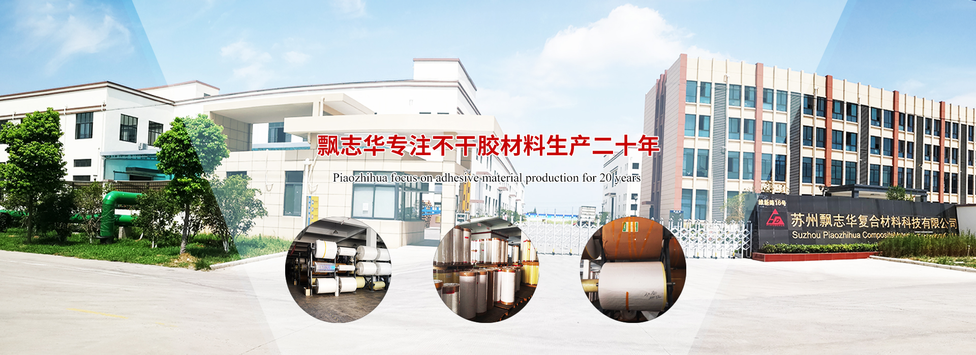 蘇州飄志華復合材料有限公司(原 “上海飄得華膠粘制品有限公司”)是專業(yè)生產高檔與中高檔多功能不干膠材料廠家。工廠位于蘇州太倉市,擁有淋膜、上硅、制膠、復合、分切等一體化不干膠材料生產線,年產量超2.8億平方米。